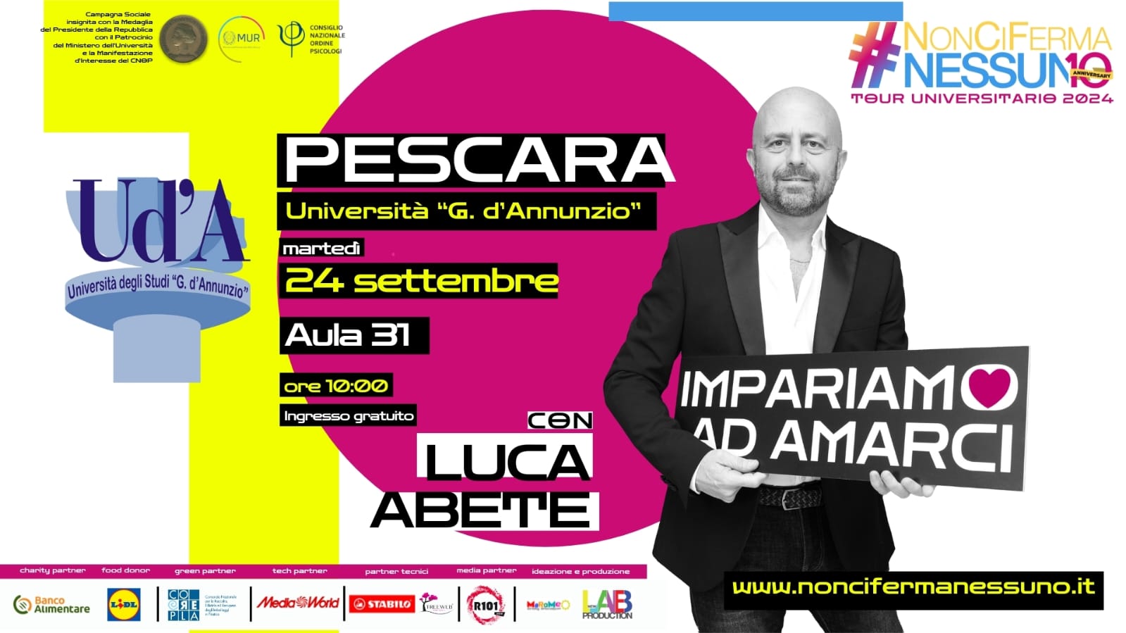 Riparte da Pescara il tour motivazionale ideato e animato da Luca Abete, rivolto alle nuove generazioni, #NonCiFermaNessuno.