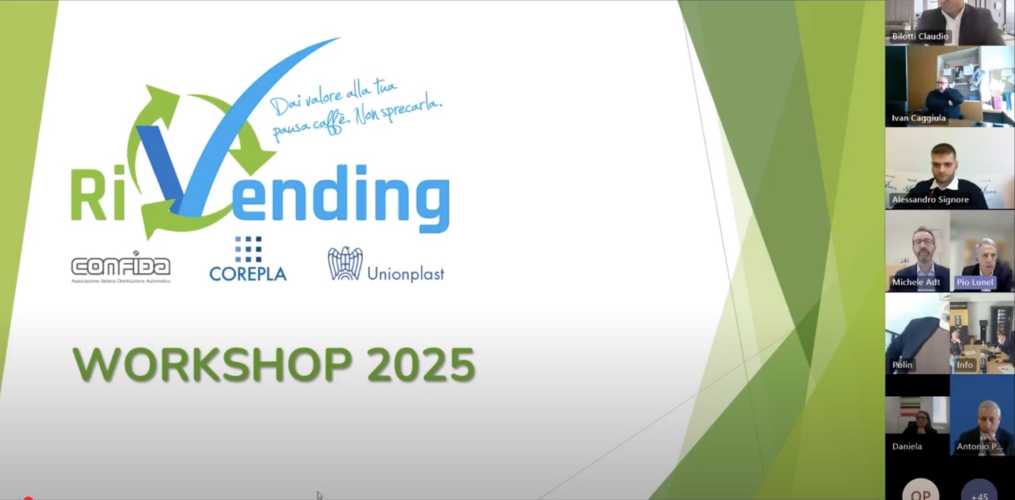 Il webinar si è concluso con una panoramica sulle attività di comunicazione del progetto e sulla crescente partecipazione del vending a eventi e iniziative pubbliche, come il tour universitario con Luca Abete e la newsletter “Mondo RiVending”.